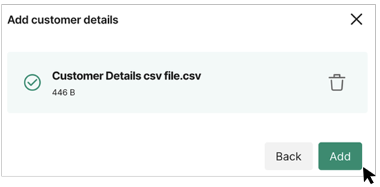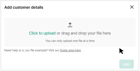 - When done with adding the information to the .csv file, save the file, click the green "Add Customer Details" button on the page and follow the flow: