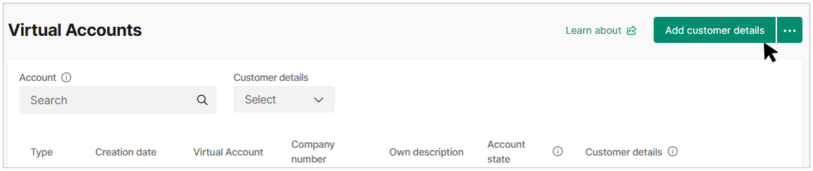 - Pending - The Virtual Account’s Customer Details have been submitted and are being processed.