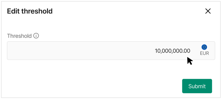 If no threshold is set, payments can be processed up to the maximum limit of 999,999,999 EUR.