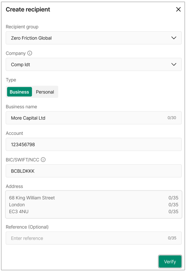 - If your permissions allow you to create recipients with approvals, the new recipient will require approval from an authorised user before it can be used.