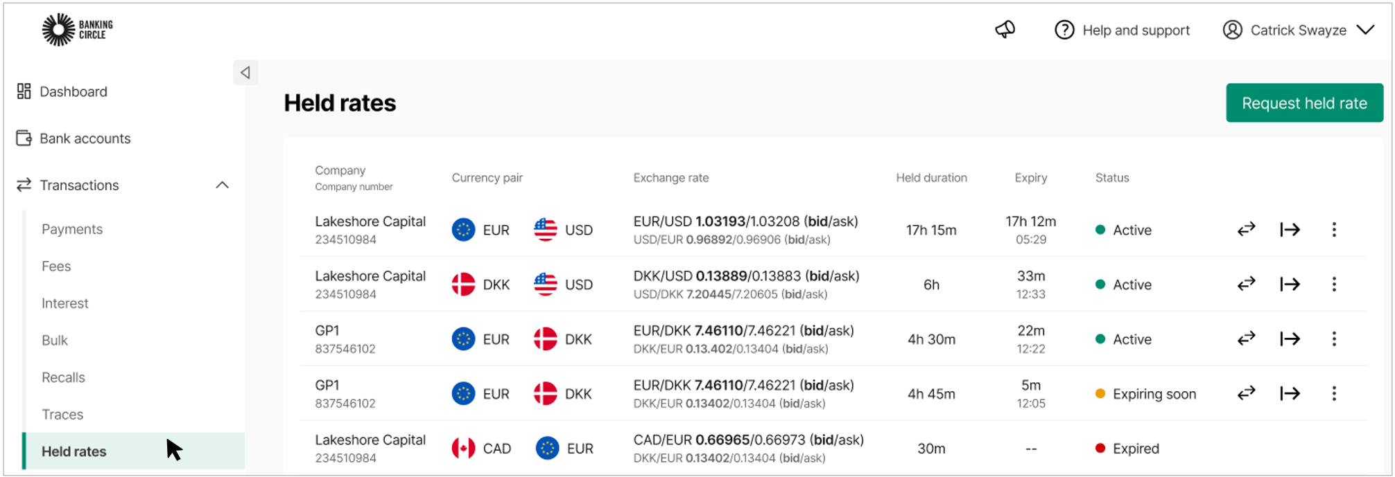 - Expiry: Indicates the time remaining before the held rate expires.